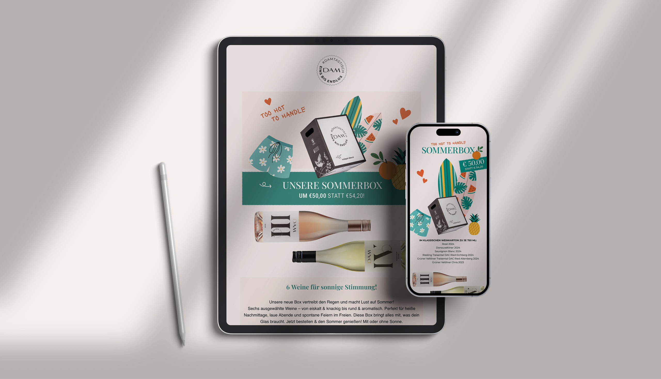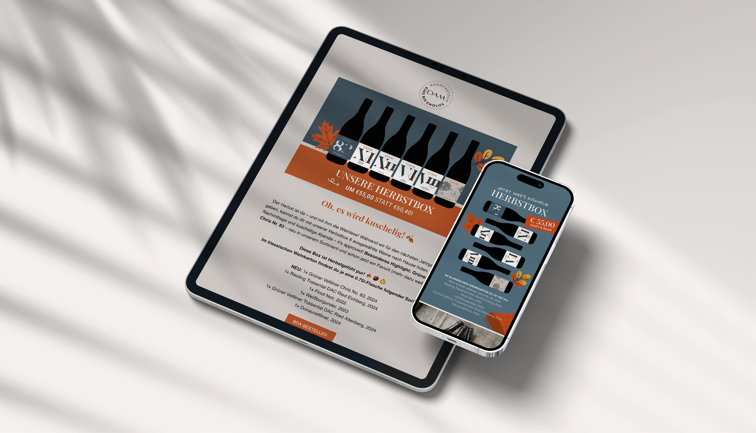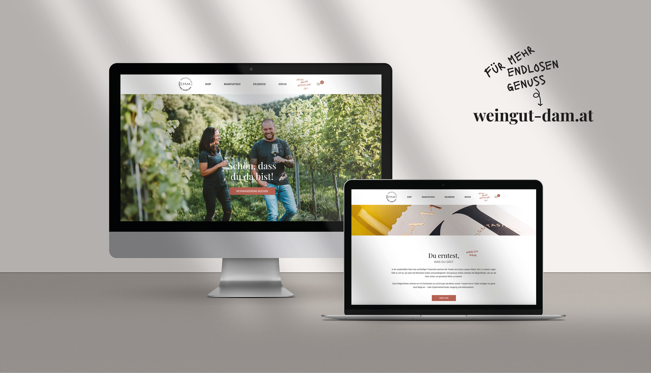 Website und Newsletter performen auf allen Devices zuverlässig, während Design, Story und Strategie perfekt ineinander greifen und präzise auf das Branding des Weinguts abgestimmt sind. Jedes Detail – vom Bildkonzept über die Texttonalität bis hin zu Layout und User Experience – ist durchdacht, damit die digitale Präsenz nicht nur Aufmerksamkeit erzeugt, sondern auch messbaren Mehrwert liefert. So entstehen Online-Lösungen, die verkaufen, die Marke stärken und gleichzeitig Freude machen. Die DAMs würden das übrigens #damtastisch nennen.